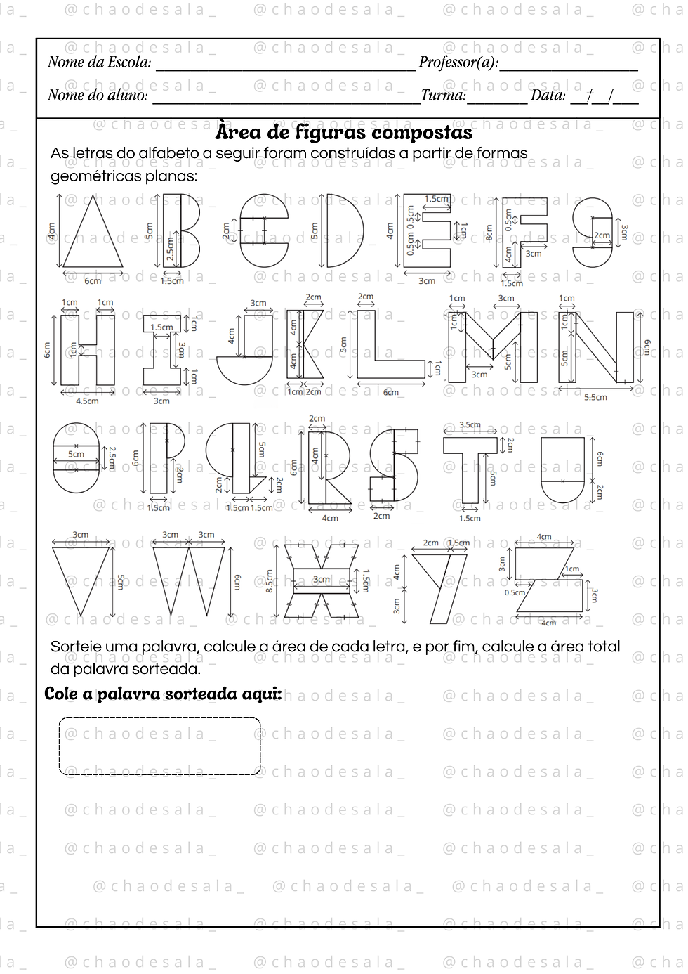 Calculando a área da palavra MATEMÁTICA